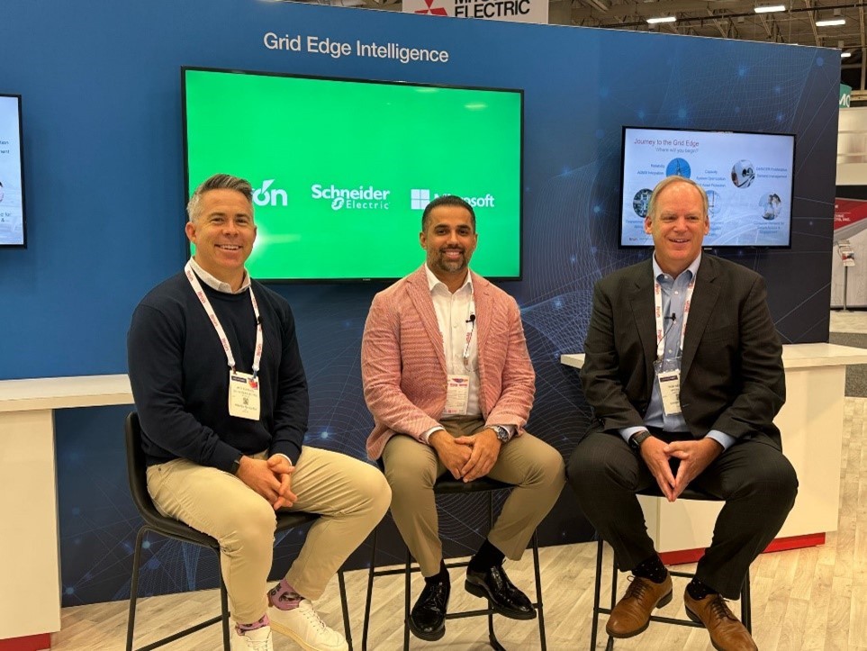 • New Collaborations: Itron’s latest partnership announcements with industry leaders, including NVIDIA, Microsoft, Schneider Electric, Tesla and Xcel Energy, are expanding our ability to support utilities with enhanced grid visibility, real-time data and automated operations. These collaborations reinforce our commitment to delivering solutions that empower utilities to stay ahead of evolving grid challenges. Pictured below is Don Reeves, Itron; Bilal Khursheed, Microsoft; and Matt Schnugg, Schneider Electric.