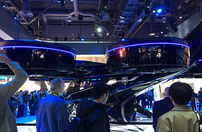My first visit to the Consumer Electronics Show (CES) left my head spinning – figuratively and literally. To begin with, I was intrigued by the mass of humanity – from all corners of the globe – swarming from exhibit to exhibit. I was fascinated and enthralled by tiny drones buzzing around like bees, a squad of robots dancing to Uptown Funk by Bruno Mars and a mammoth paneled screen that brings ocean waves crashing over your head. But what really left me dazed – literally – was a turn in the flight simulator for the monstrous six-propellered Bell drone on display.
