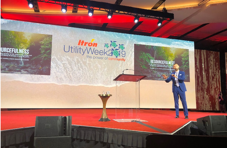 A common theme in Monday’s general session was resourcefulness. Deitrich took the stage and reminded us that the challenges facing our industry are daunting—but not insurmountable. And to address these challenges, we need to work together. Our ability to transform the industry lies in community—in an ecosystem of like-minded companies banded together to share knowledge and learn from one another. IUW brings the best of our community together to share ideas, learn lessons and design the future we want—and need—for ourselves, our businesses and our communities. Building on the thread of resourcefulness, Deitrich went on to highlight Itron’s purpose of creating a more resourceful world. He noted three key ingredients that drive Itron’s purpose: innovation, technology and insights from data and analytics.